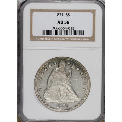 1871 S$1 AU58 NGC. A pleasing example that was probabl