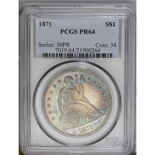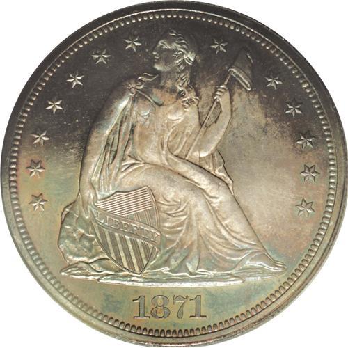 1871 S$1 PR64 PCGS. Swirling orange, rose, and blue ir 1871[img border='0' src='http://www.heritagec