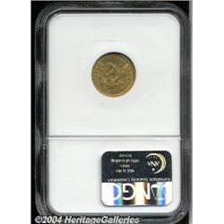 <B>1871-S<$2 1/2> MS61 NGC.</B></I> Seldom seen in Mint State condition, only 22,000 pieces were struck of this conditionally challenging S-mint (one of many from this era). This example shows uncharacteristically sharp definition in most all areas, save for the eagle's left (facing) leg. The surfaces have a deep reddish-gold and gray patina over both sides. Perhaps this is a characteristic of many '71-S Quarter Eagles. Just a few small marks help to limit the grade. Population: 9 in 61, 19 finer (4/04).<BR><I>Ex: Stack's Public Auction Sale (12/71), lot 785.</B></I> <BR><BR><B>Important notice:</B> Heritage usually auctions material at the rate of 200-250 lots per hour. On some occasions eBay Live bid software or the Internet may not be able to keep up with the pace of the auction. We recommend placing a realistic absentee bid now as insurance to avoid disappointment. Occasionally the auctioneer may eliminate or reject an eBay Live bid, and the auctioneer may also reopen a lot after the close of the eBay live bidding (usually because we missed an audience bid), and may reject your bid even if it shows you as the winning bidder. By bidding via eBay Live, you agree that Heritage may award the lot to another bidder at its sole discretion under the circumstances described above or any other reasonable circumstances. Since eBay bids are not shown to us until we open the lot on the floor, we treat those bids just like floor bids. In most cases the floor responds before the eBay bid is presented to us, due to Internet lag time, so for consistency we have made it a policy that floor bids are always considered first over tie eBay live bids. Also please note that all Heritage lots purchased through eBay Live carry a 20% Buyer's Premium. Please make sure you read the Terms and Conditions before you bid.