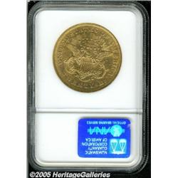 <B>1871-S $20 AU50 NGC.</B></I> Considerable luster remains on brass-gold surfaces that are lightly abraded.