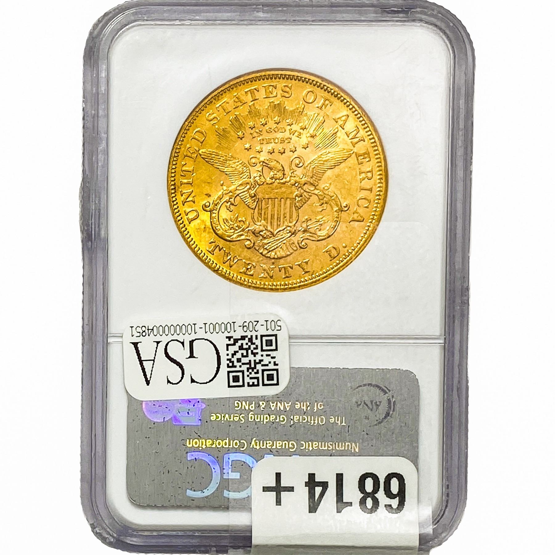 l. All non-certified coins and currency are guaranteed genuine, but are not guaranteed as to grade, since grading is a matter of opinion, an art and not a science, and therefore the description rendered by GSA or any third-party grading service may not agree with the opinion of others (including trained experts), and the same expert may not grade the same item with the same grade at two different times. GSA may, but is not obligated to, express an opinion as to non-certified numismatic items, in GSA’s opinion, or by its employees’ experience and the current interpretation of the American Numismatic Association’s standards as of the date the catalog was prepared. There is no guarantee or warranty expressed or implied that the grading opinions utilized by GSA, if any, will meet the standards of any grading service at any time in the future.
