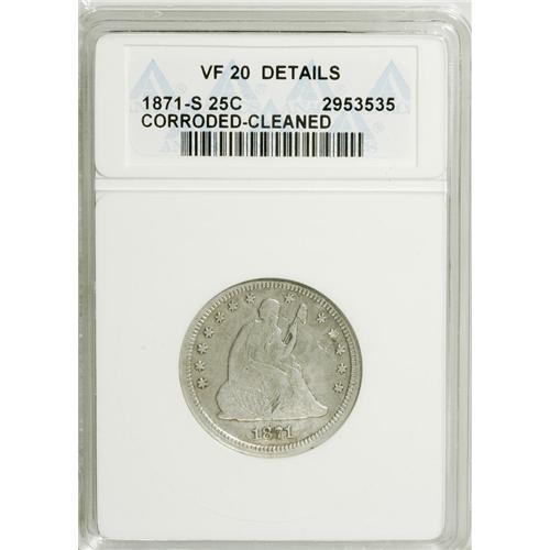 1871-S 25C --Cleaned, Corroded--ANACS. VF20 Details.