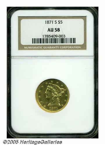1871-S $5 AU58 NGC. Breen-6678, which he consider