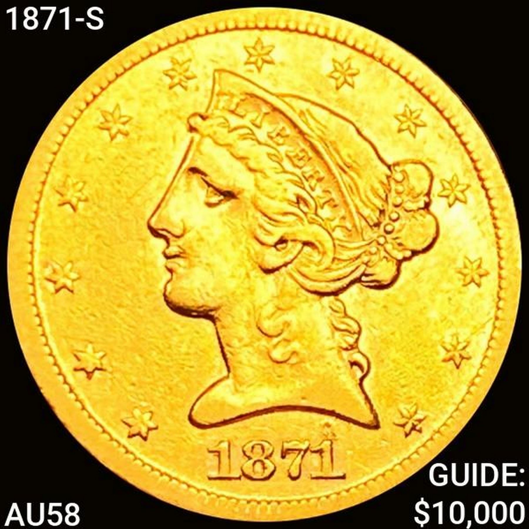 1871-S $5 Gold Half Eagle CLOSELY UNCIRCULATED