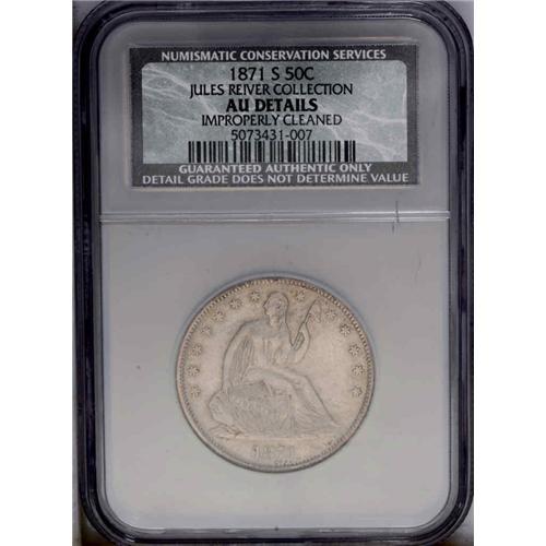1871-S 50C --Improperly Cleaned--NCS. AU Details. WB-10 1871-S[50C]--Improperly Cleaned--NCS. AU Det