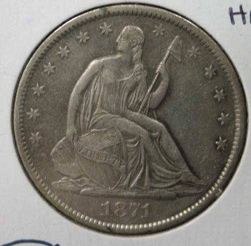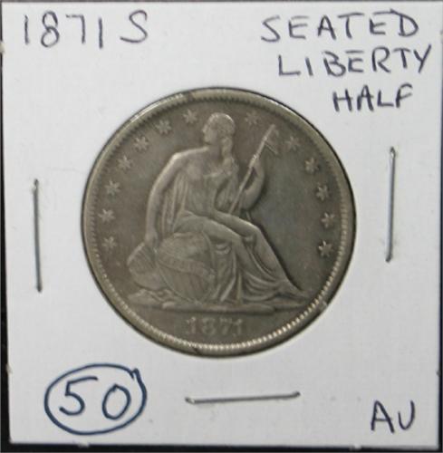 1871-S SEATED LIBERTY HALF DOLLAR. AU.