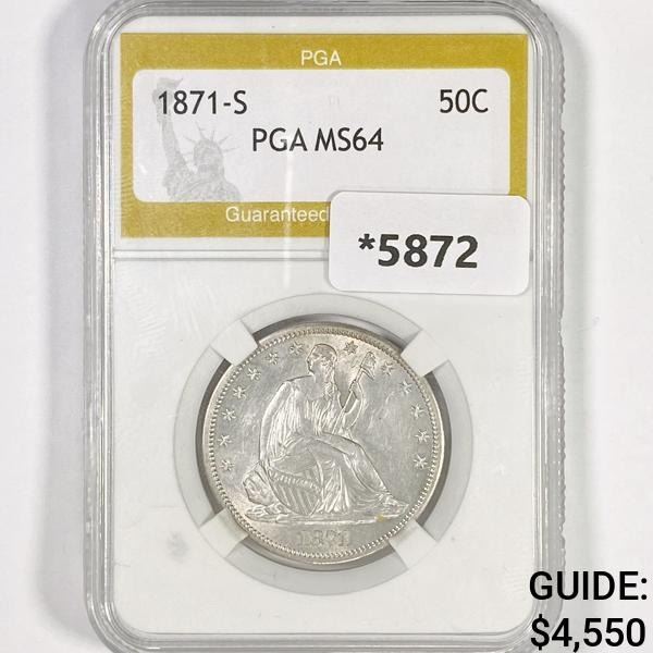 1871-S Seated Liberty Half Dollar PGA-MS64