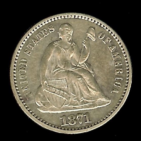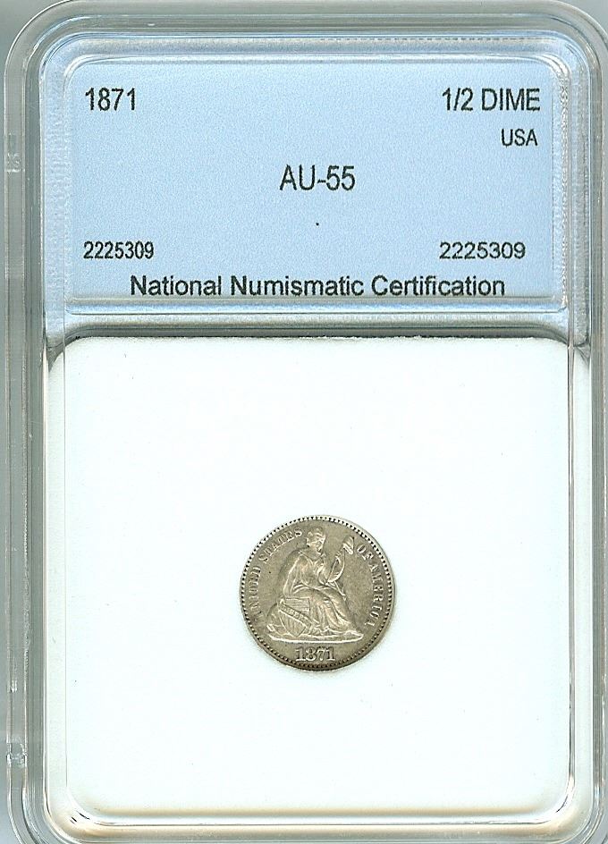 1871 SEATED LIBERTY SILVER 1/2 DIME NNC AU-55
