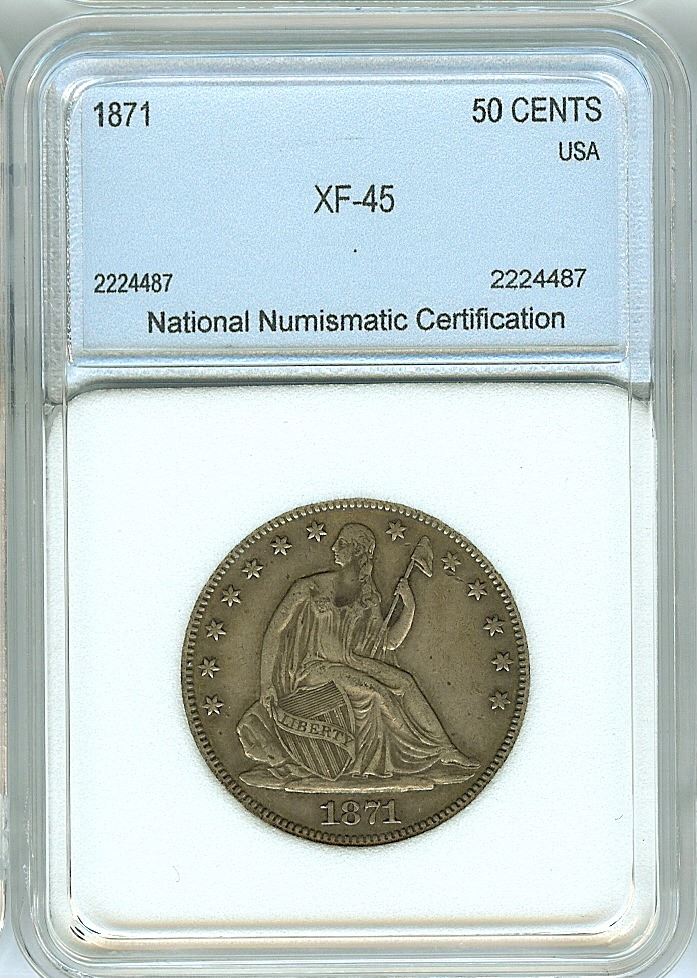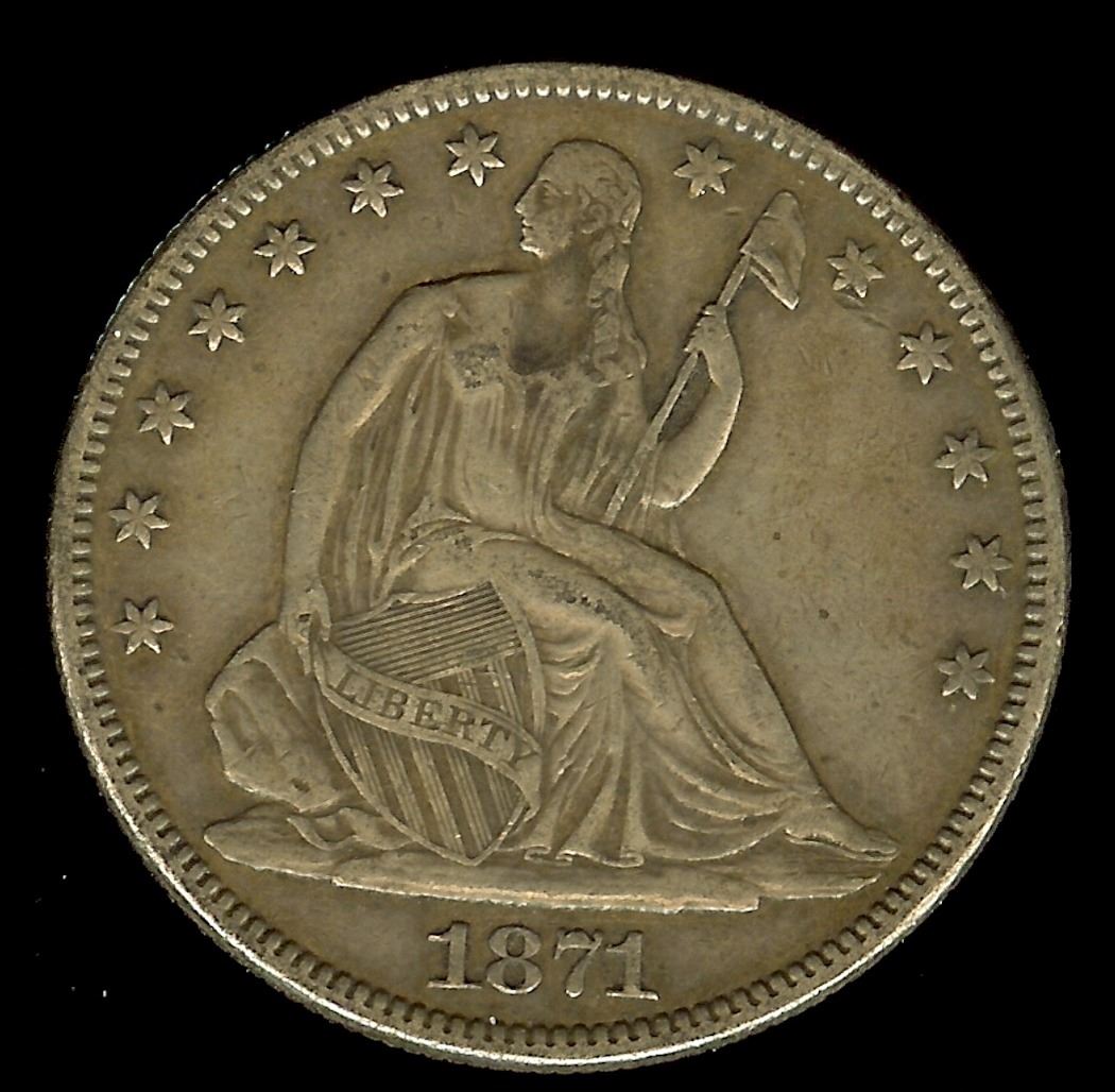 1871 SEATED LIBERTY SILVER 50 CENTS NNC XF-45