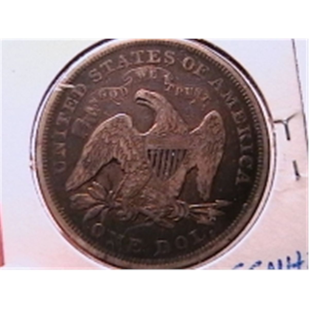 1871 Seated Dollar F12.Beautiful pristine medium gray surfaces. Liberty is almost full. Very few marks