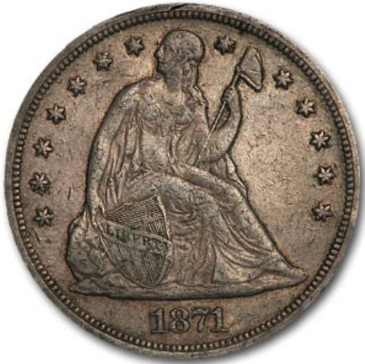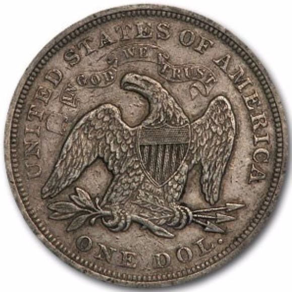 One 1871 Seated Liberty Dollar Coin.