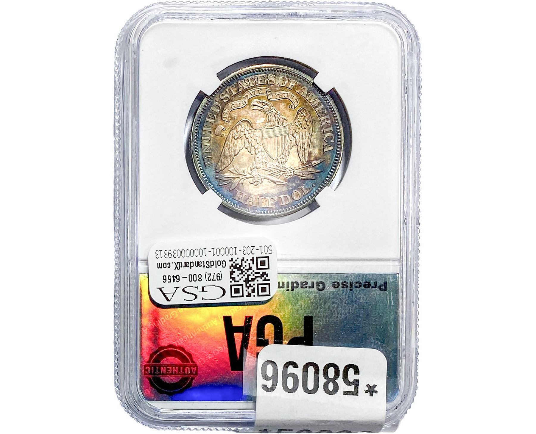 COINS AND CURRENCY LISTED IN GSA’S CATALOG AS GRADED AND ENCAPSULATED BY PCGS, NGC, ANACS, ICG, PCGS CURRENCY, PMG, PCGS BANKNOTE GRADING, CMC OR ANY OTHER THIRD-PARTY GRADING SERVICE ARE LIKEWISE SOLD “AS-IS” EXCEPT AS EXPRESSLY SET FORTH HEREIN. ALL THIRD-PARTY GRADING SERVICE GUARANTEES, INCLUDING AUTHENTICITY, ARE THE SOLE RESPONSIBILITY OF THE THIRD-PARTY GRADING SERVICE AND NOT WARRANTIES OR GUARANTEES OF GSA. BIDDERS SHOULD CONTACT THESE THIRD-PARTY GRADING SERVICES DIRECTLY WITH RESPECT TO ANY CLAIMS OR QUESTIONS THEY MAY HAVE CONCERNING THEIR GUARANTEES AND WARRANTIES. BIDDERS ACKNOWLEDGE AND AGREE THAT AUCTIONEER IS NOT BOUND BY OR LIABLE FOR ANY OPINION OR CERTIFICATION BY ANY THIRD-PARTY GRADING SERVICE. REMOVAL OF A PRODUCT FROM ITS PROTECTIVE CASING OR HOLDER OR ALTERATION OF ANY COIN HOLDER WAIVES ALL RIGHTS CONCERNING THE PRODUCT CONTAINED THEREIN.