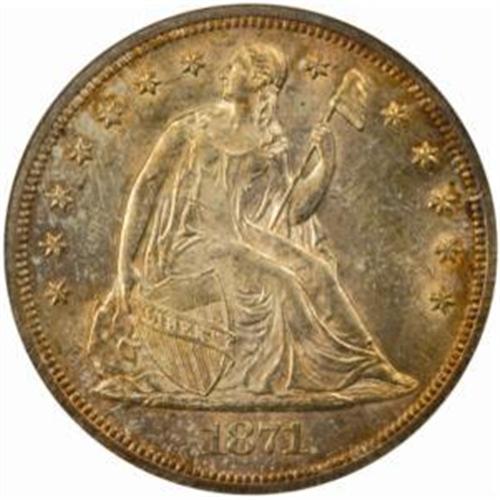 <style type="text/css"> body, td, th { font-family: Arial, Helvetica, sans-serif; font-size: 12px; color: #482424; margin: 0px; padding: 0px; } #header { background-image: url(http://www.bowersandmerena.com/ebay/images/template_v3_01.gif); clear: both; background-color: #590303; border-top-width: 2px; border-top-style: solid; border-top-color: #B38C4F;}#header #header_wrapper { height: 75px; clear: both; width: 800px; margin-right: auto; margin-left: auto; background-image: url(http://www.bowersandmerena.com/ebay/images/template_v3_03.gif); background-repeat: no-repeat; background-position: right; color: #F3EDCC;}#header #header_wrapper #header_logo { float: left; height: 75px; width: 444px; background-image: url(http://www.bowersandmerena.com/ebay/images/template_v3_02.gif); background-repeat: no-repeat; font-size: 10px; text-transform: capitalize; color: #B38C4F;}#header #header_wrapper #header_right { float: left; height: 75px; width: 356px; text-align: right;}#header #header_wrapper #header_right #headerLoginBtn { margin-bottom: 30px;}#header #header_wrapper #header_right input#txtSearch { color: #B49056; border: 1px solid #B49056; width: 175px; padding-top: 3px; padding-right: 3px; padding-bottom: 4px; padding-left: 3px;}#nav { height: 37px; background-image: url(http://www.bowersandmerena.com/ebay/images/template_v3_05.gif); clear: both;}#nav #nav_wrapper { height: 35px; width: 800px; margin-right: auto; margin-left: auto; border-left-width: 1px; border-left-style: solid; border-left-color: #B38C4F;}#nav #nav_wrapper a { padding-right: 15px; padding-left: 15px; border-right-width: 1px; border-right-style: solid; border-right-color: #B38C4F; height: 25px; padding-top: 10px; display: block; float: left; text-decoration: none; font-weight: bold; color: #5D0303;}#nav #nav_wrapper a:hover { color: #B38C4F;}#nav #nav_wrapper #search { float: right; padding-top: 7px;}#nav #nav_wrapper #search #txtSearch { font-family: Arial, Helvetica, sans-serif; font-size: 10px; text-transform: uppercase; color: #D2AE75; border: 1px solid #B38C4F; padding: 3px;}#content_bgd { background-image: url(http://www.bowersandmerena.com/ebay/images/template_v3_09.gif); background-repeat: repeat-y; background-position: center; padding-top: 15px; padding-bottom: 15px; background-color: #FBFBDB;}#content_wrapper { clear: both; height: auto; width: 800px; margin-right: auto; margin-left: auto;}.LotDetailWhite{ line-height:normal; font-size:13px; font-family: arial,helvetica,sans-serif; color: White; font-weight: bold;}.LotDetailInformation{ line-height:normal; font-size: 13px; font-family: arial,helvetica,sans-serif;}.LotDetailMessage{ line-height:normal; font-size: 13px; font-family: arial,helvetica,sans-serif; color: red;}}tr.HeaderAuctionTitle td { color: #000000; font-weight: bold; padding: 2px; background-image: url(http://www.bowersandmerena.com/ebay/images/template_v3_05.gif); background-repeat: repeat-x; border-bottom-width: 1px; border-bottom-style: solid; border-bottom-color: #B38C4F;}table.AuctionSummary a, table.AuctionSummary a:link, table.AuctionSummary a:visited { color: #0000FF; text-decoration: none;}}td.tableHeaderLeft { border-left-width: 1px; border-left-style: solid; border-left-color: #B38C4F;}td.tableHeaderRight { border-right-width: 1px; border-right-style: solid; border-right-color: #B38C4F;}td.tableCellMiddle { border-left-width: 1px; border-left-style: solid; border-left-color: #B38C4F; border-right-width: 1px; border-right-style: solid; border-right-color: #B38C4F; padding: 5px;}tr.footer td { border-top-width: 1px; border-top-style: solid; border-top-color: #B38C4F;}</style></head><body><div id="header"> <div id="header_wrapper"> <div id="header_logo"> </div> <div id="header_right"> </div> </div></div><div id="nav"> <div id="nav_wrapper"> <a href="http://www.bowersandmerena.com">Our eBayLive Auctions</a> <a href="#PaymentInfo">Payment Information</a> <a href="#ShippingInfo">Shipping Information</a> <a href="#About">About Bowers and Merena</a> </div></div><div id="content_bgd"> <div id="content_wrapper"> <table width="100%" border="0" cellpadding="5" cellspacing="0" class="AuctionSummary"> <tbody> <tr class="HeaderAuctionTitle" style="height: 25px;"> <td align="left" class="tableHeaderLeft" > </td> <td align="center" class="tableHeaderRight"> <span style="font-size: large;">Lot #736. 1871 Seated Liberty Silver Dollar. MS-64 (NGC).</span> </td> </tr> <tr> <td colspan="3" class="tableCellMiddle"> Although there is no denying the fact that the 1871 is one of the easier Seated Dollars to locate in Mint State, one must also remember that coins at and near the Gem level of preservation are still very scarce pieces from a condition standpoint. Here's a pretty example, the surfaces fully frosted beneath vivid champagne-pink iridescence that appears to deepen in color ever-so-slightly toward the rims. Fully struck devices are sure to endear this coin to the type collector, while a lack of all but a couple of moderate-size distractions on the obverse confirms the validity of the MS-64 grade. The reverse is actually smooth enough to support a full Gem rating.