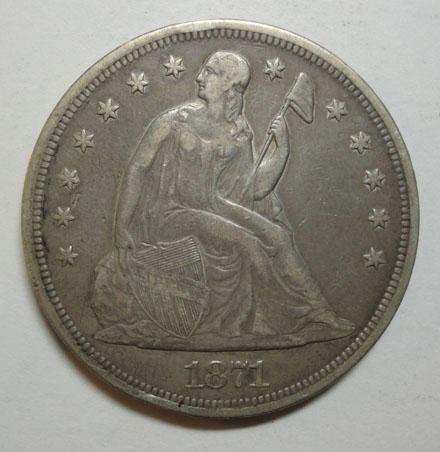 1871 Seated $ all original undipped VF very small rim bump 7:00 and 12:00
