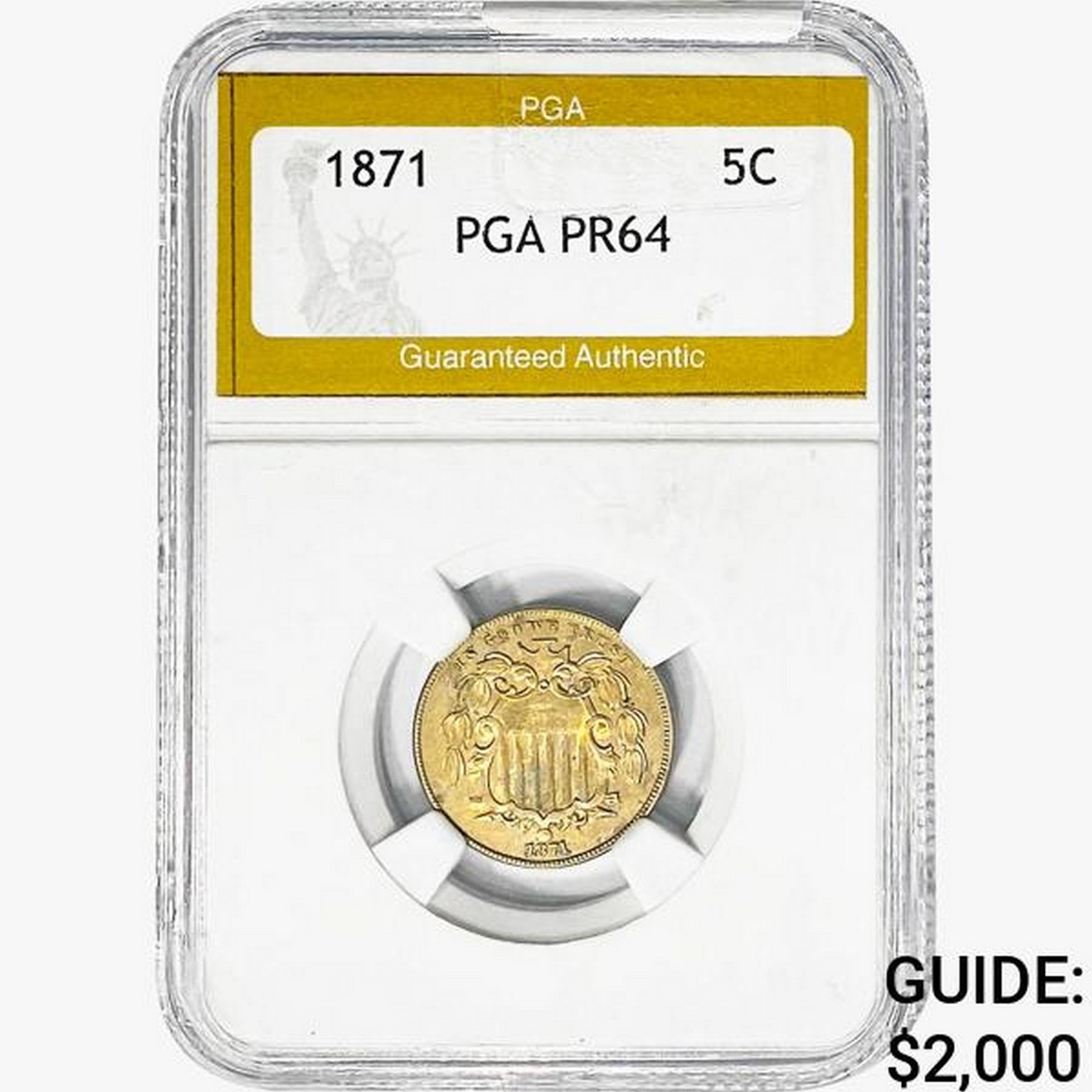 1871 Shield Nickel PGA PR64