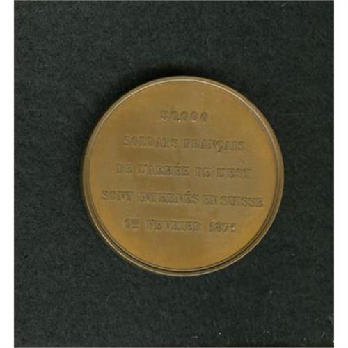 <B>1871 Return of 80,000 Prisoners From Switzerland.</B></I> 50 mm, 68.3 gm. Bronze. Commemorates the return of the 80,000 French prisoners of war from Switzerland on February 1, 1871.<BR><BR><b>Shipping:</b> Coins & Currency (<a target="_blank" href="http://www.heritageauctions.com/common/shipping.php">view shipping information</a>)