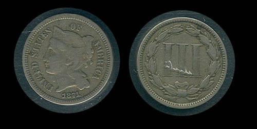 1871 Three Cent Nickel F/VF; Nice slightly tougher date type coin
