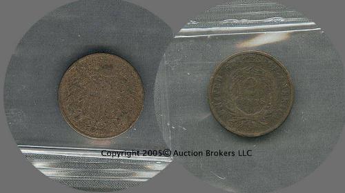 1871 Two Cent Fine detail; Low mintage date! F retail $40