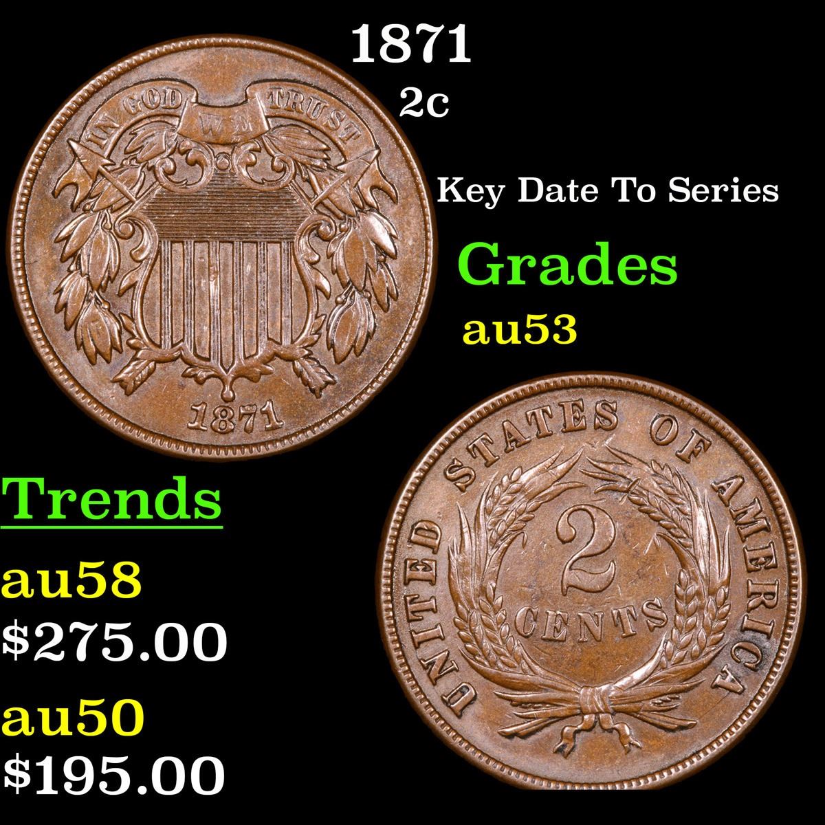 1871 Key Date To Series . Two Cent Piece 2c Grades Select AU.
