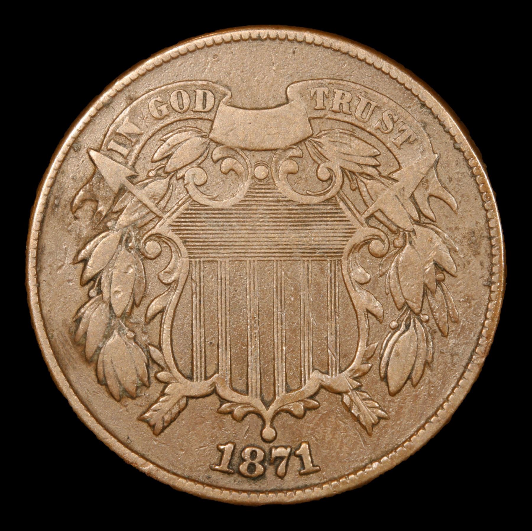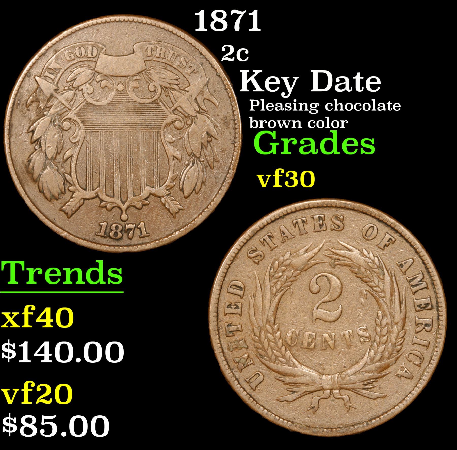 1871 Two Cent Piece 2c Grades vf++. Key Date; Pleasing chocolate brown color A Corey's Pick