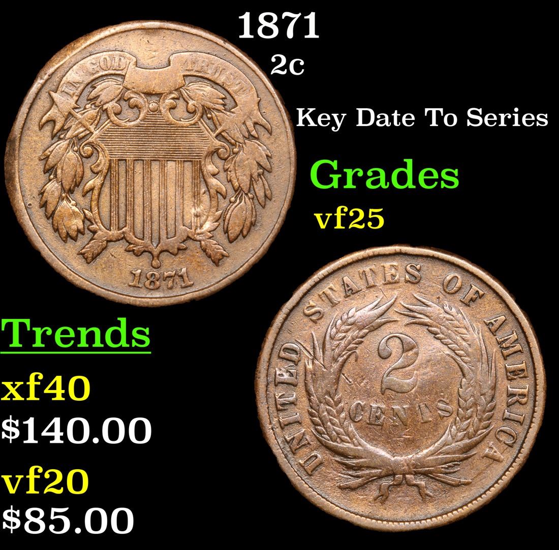 1871 Key Date To Series . Two Cent Piece 2c Grades vf+.