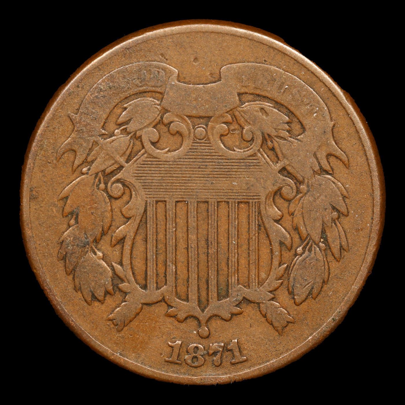 1871 Two Cent Piece 2c Grades vf+.