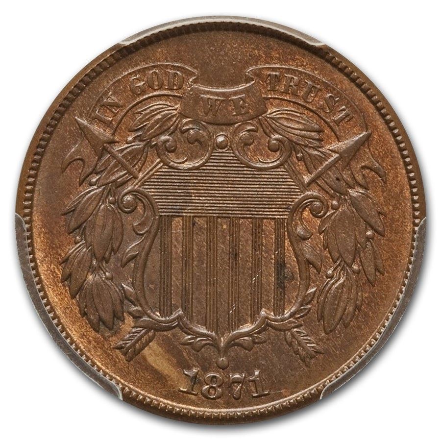 1871 Two Cent Piece MS-65+ PCGS CAC (Brown)