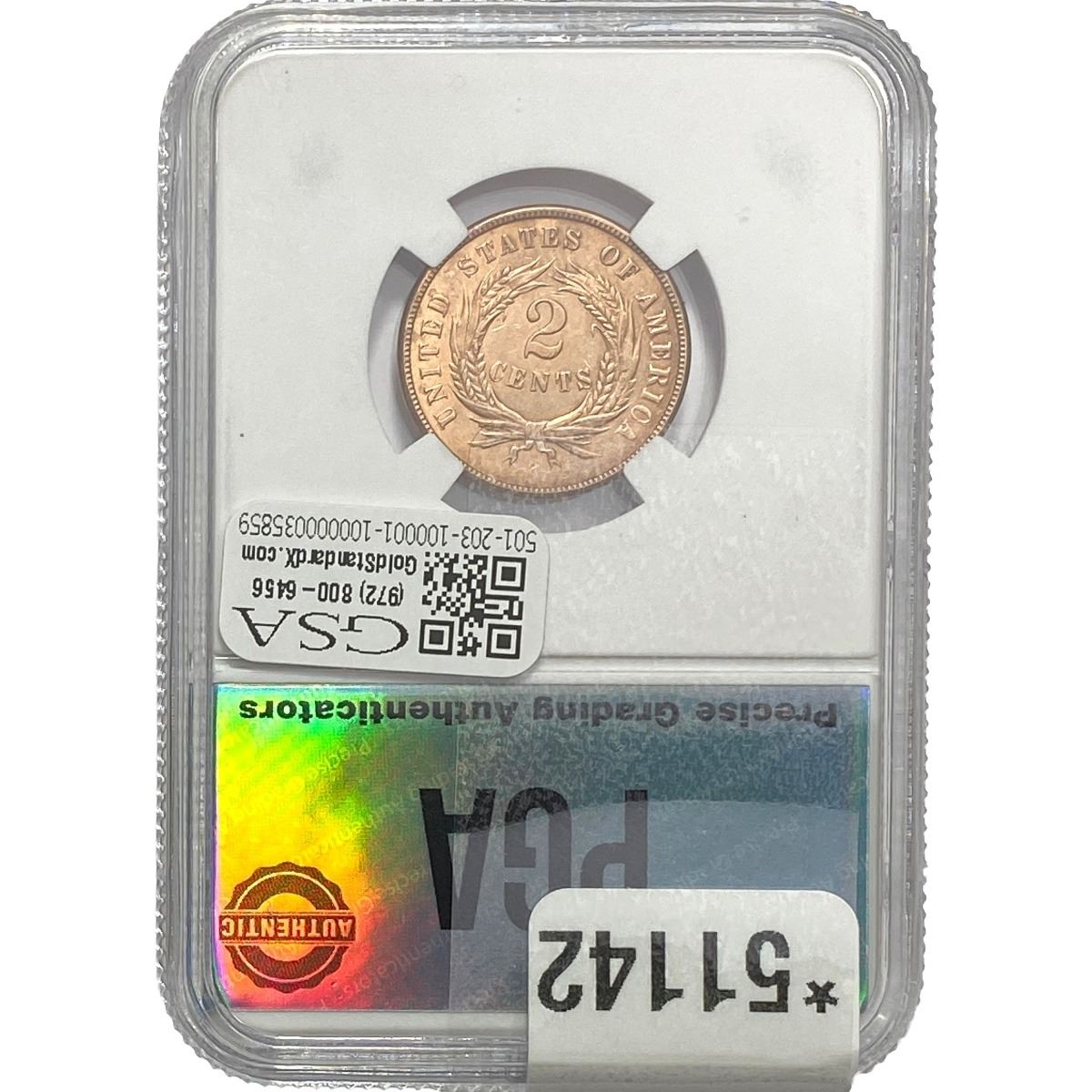 1871 Two Cent Piece PGA MS62 RED