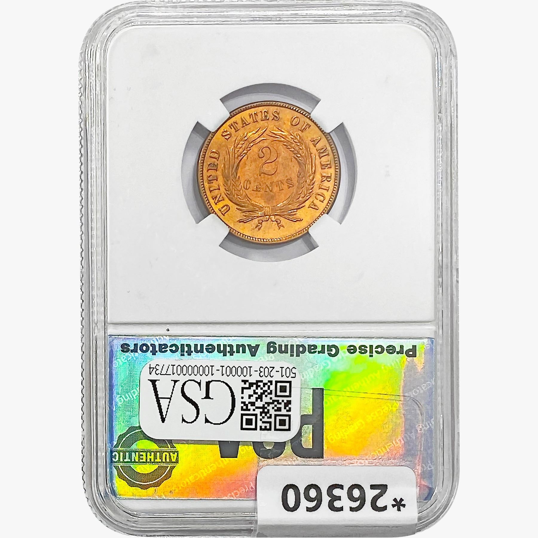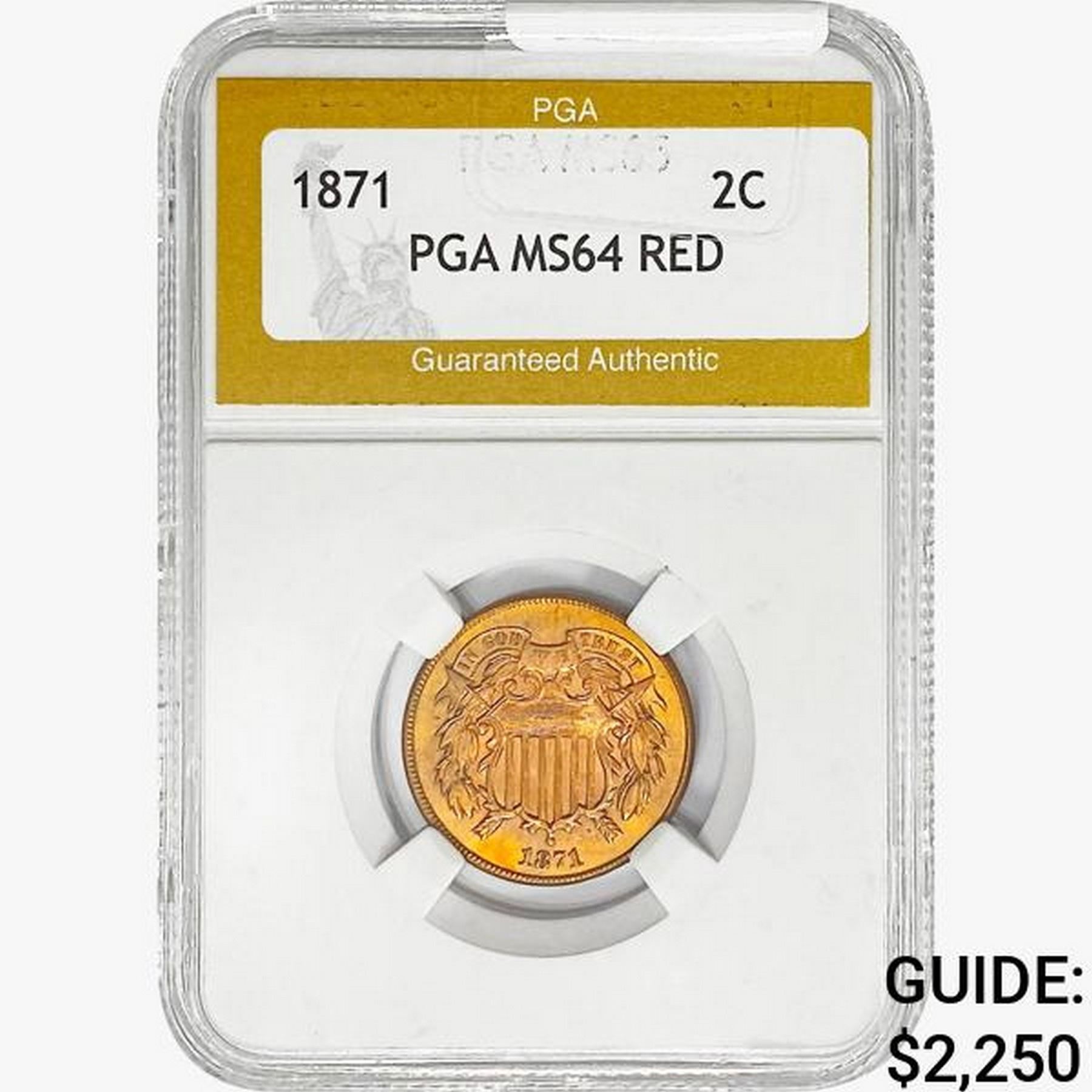1871 Two Cent Piece PGA MS64 RED