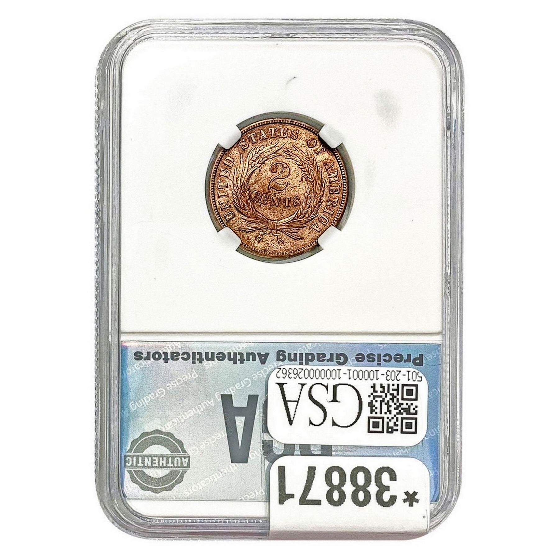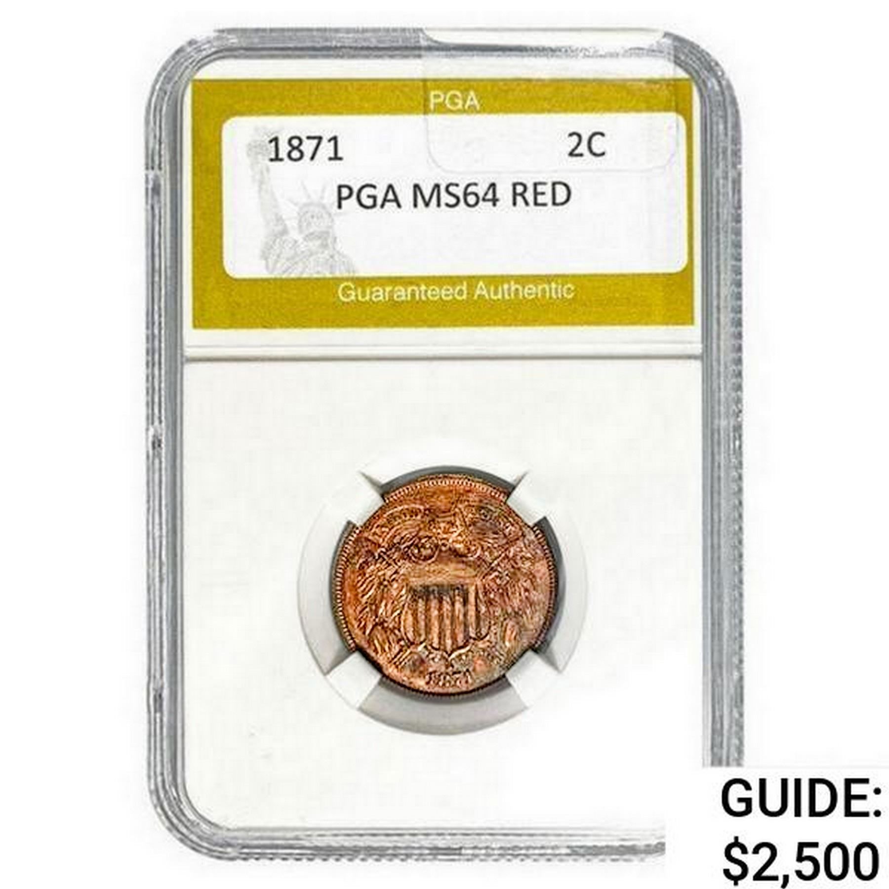 1871 Two Cent Piece PGA MS64 Red