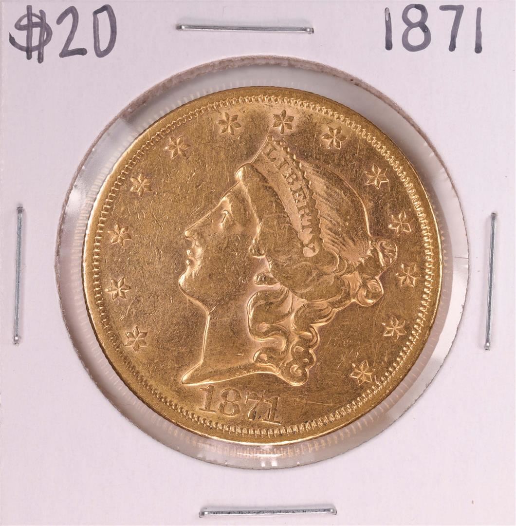 One 1871 Type 2 $20 Liberty Head Double Eagle Gold Coin.
