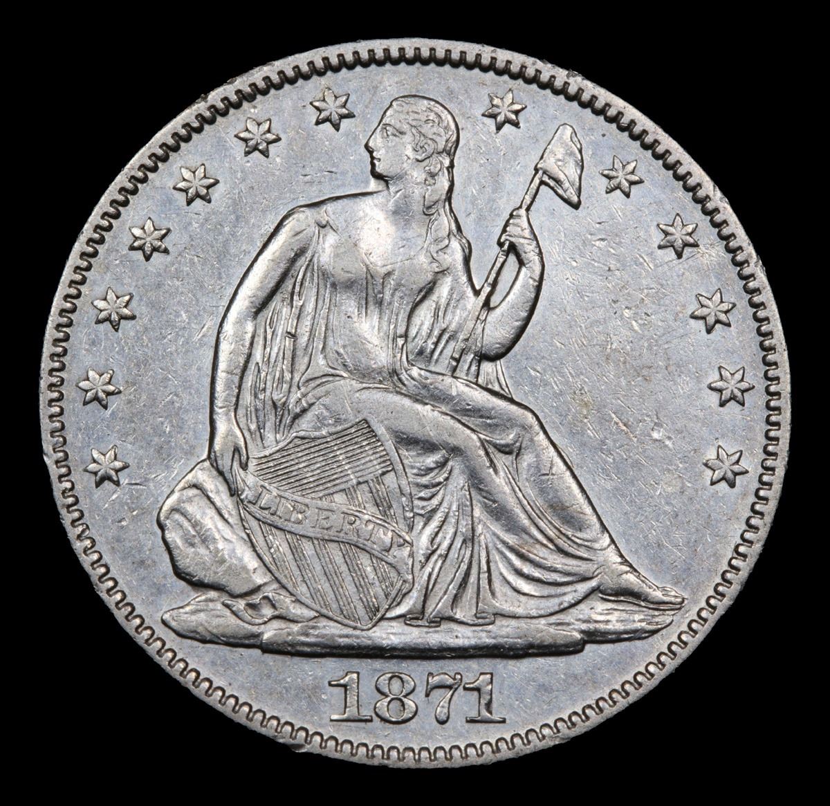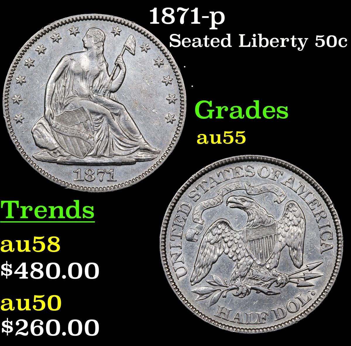 1871-p Seated Half Dollar 50c Grades Choice AU.