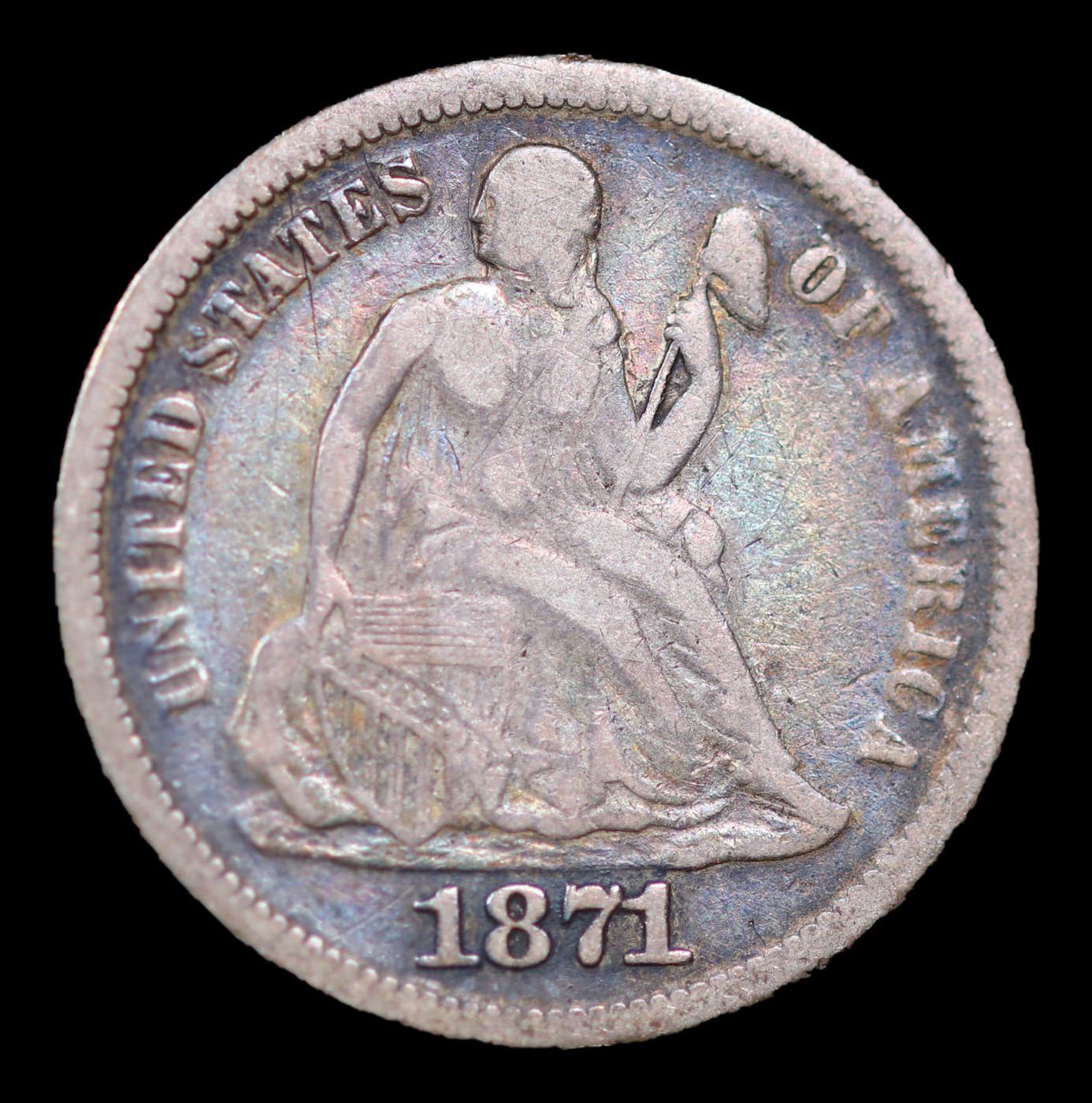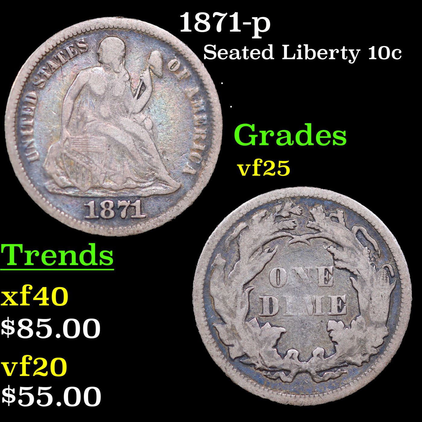 1871-p Seated Liberty Dime 10c Grades vf+.
