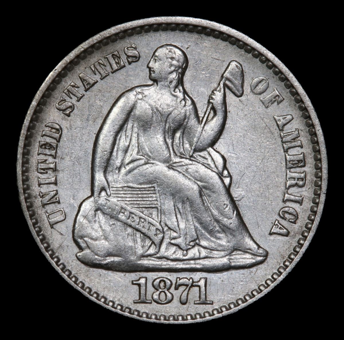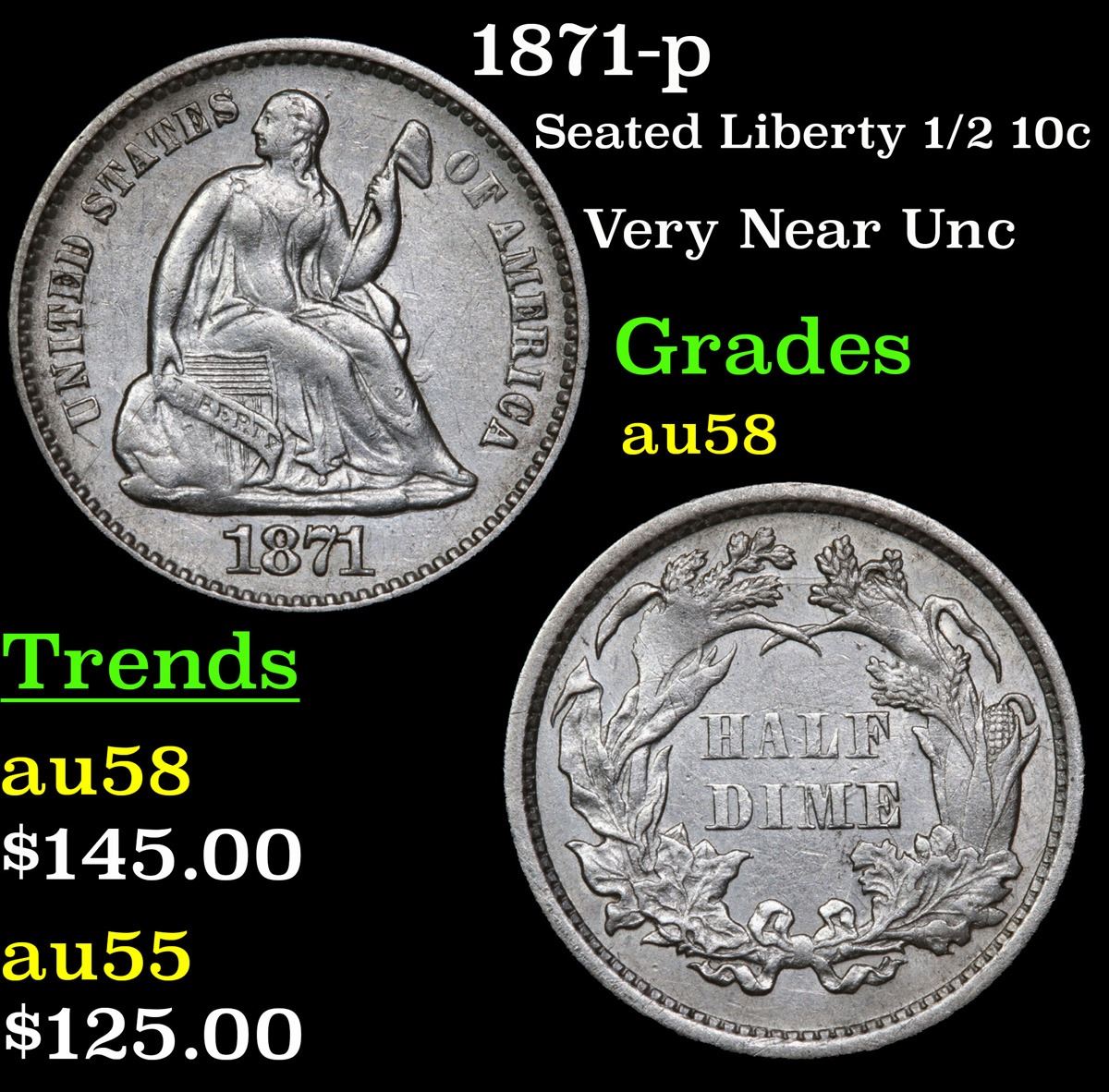 1871-p Seated Liberty Half Dime 1/2 10c Grades Choice AU/BU Slider.