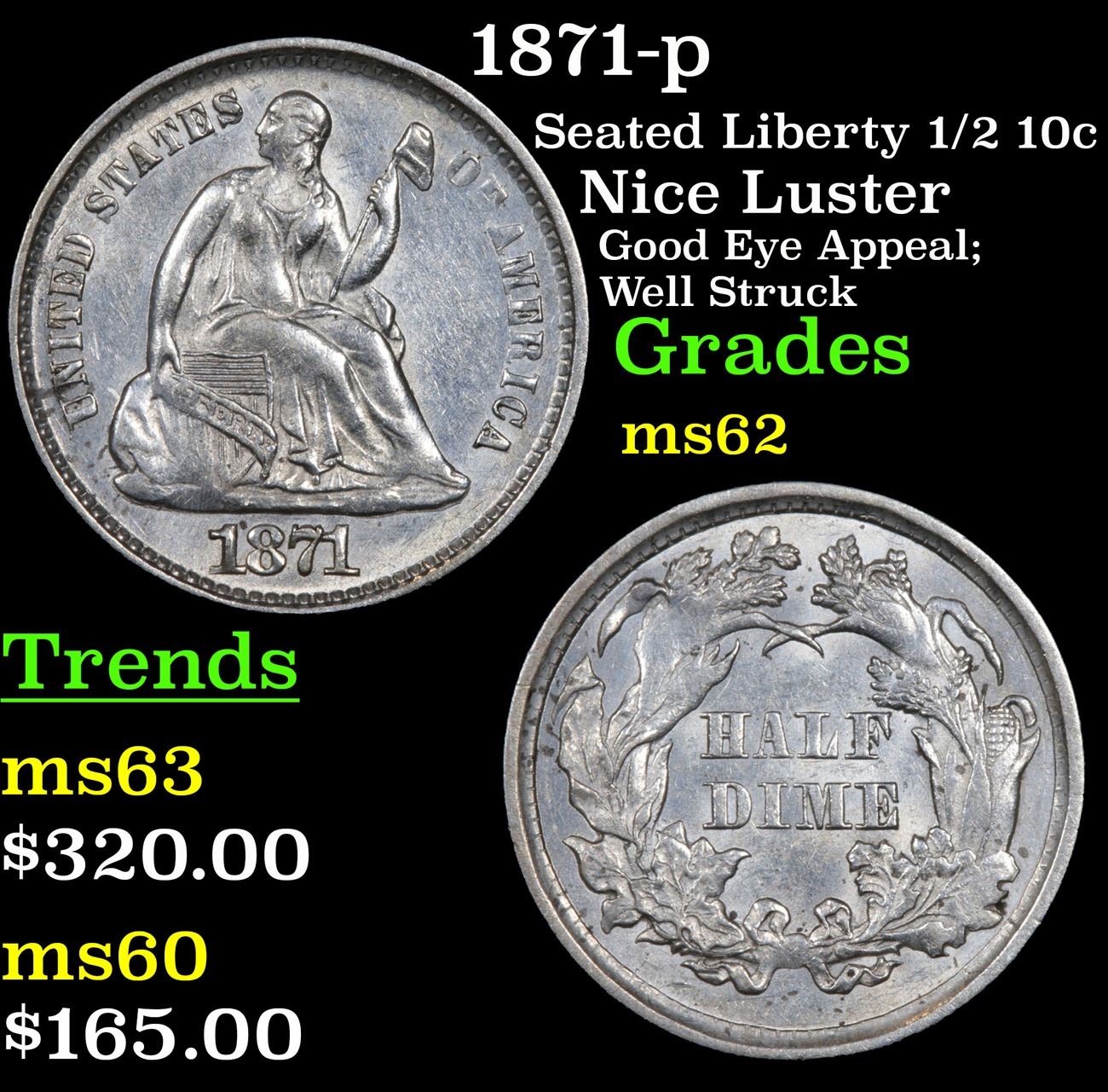 1871-p Nice Luster Good Eye Appeal; Well Struck Seated Liberty Half Dime 1/2 10c Grades Select Unc.