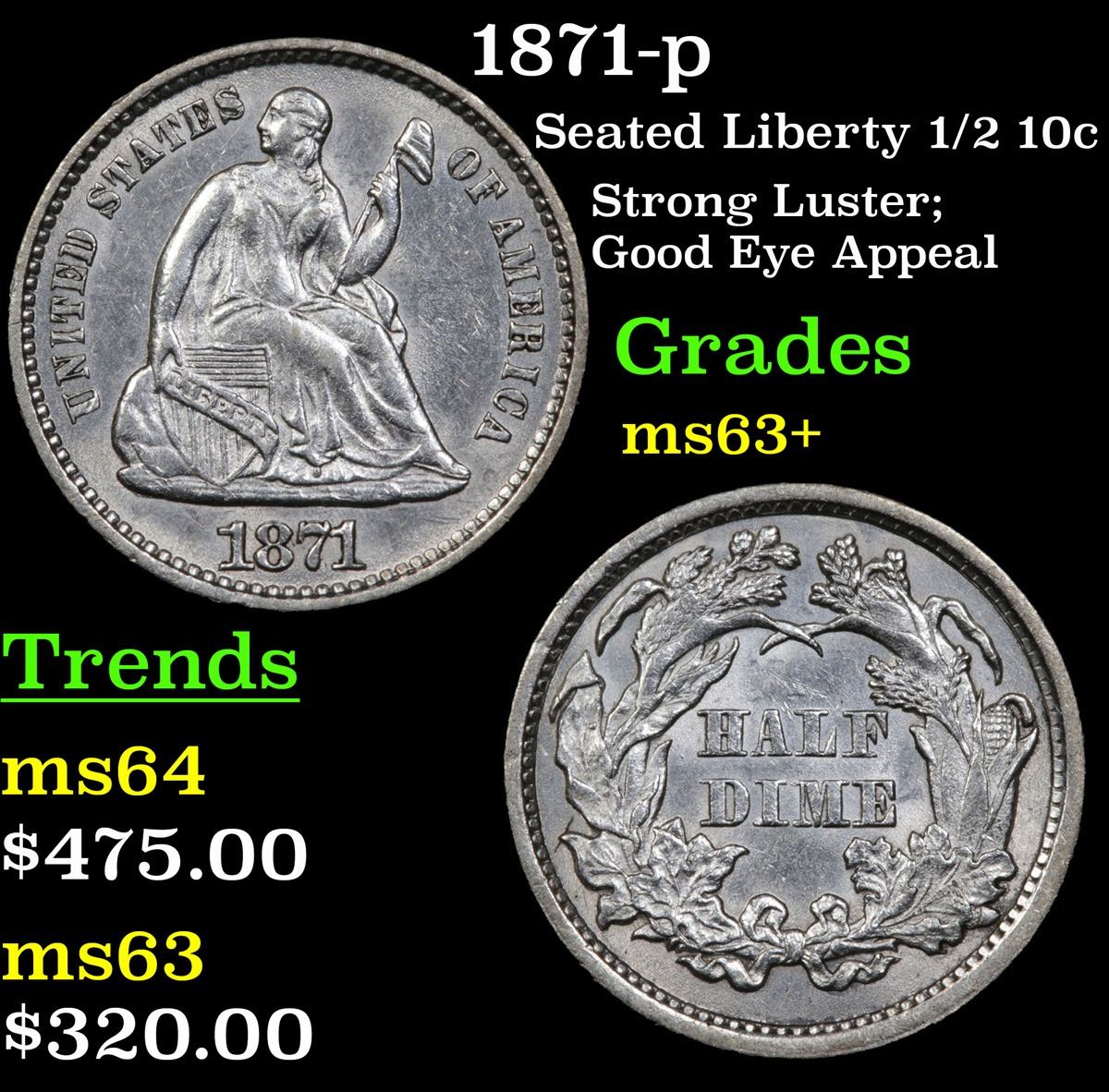 1871-p Seated Liberty Half Dime 1/2 10c Grades Select+ Unc.