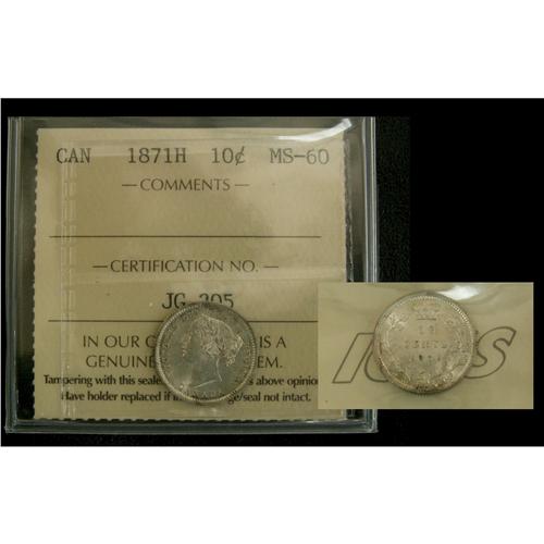 1871H 10¢ ICCS MS60, brilliant and lustrous