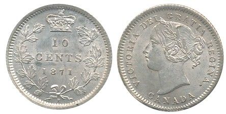 1871H 10¢ ICCS MS64. Attractive example with bright lustre.