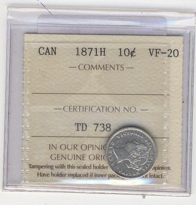 1871H 10¢ ICCS VF20.