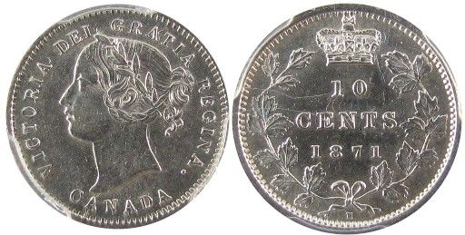 1871H 10¢ PCGS AU58. alast white and sharp. Very flashy and attractive example.