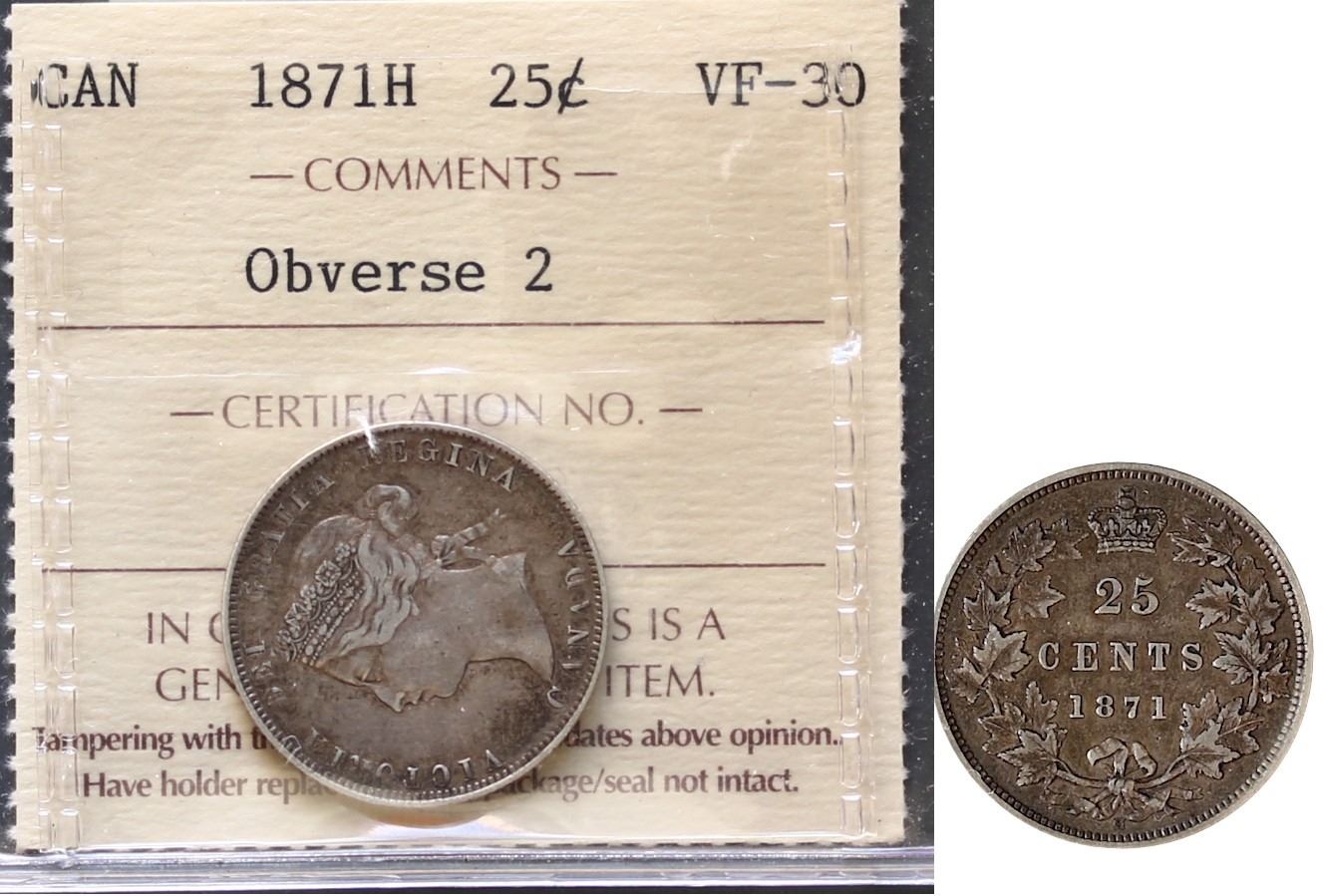 1871H 25¢ Obv 2 ICCS Choice Very Fine-30.