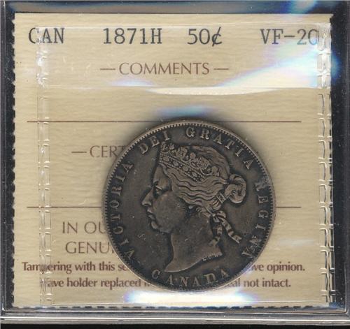 1871H 50¢. Another nice Victorian key date example in ICCS VF20.