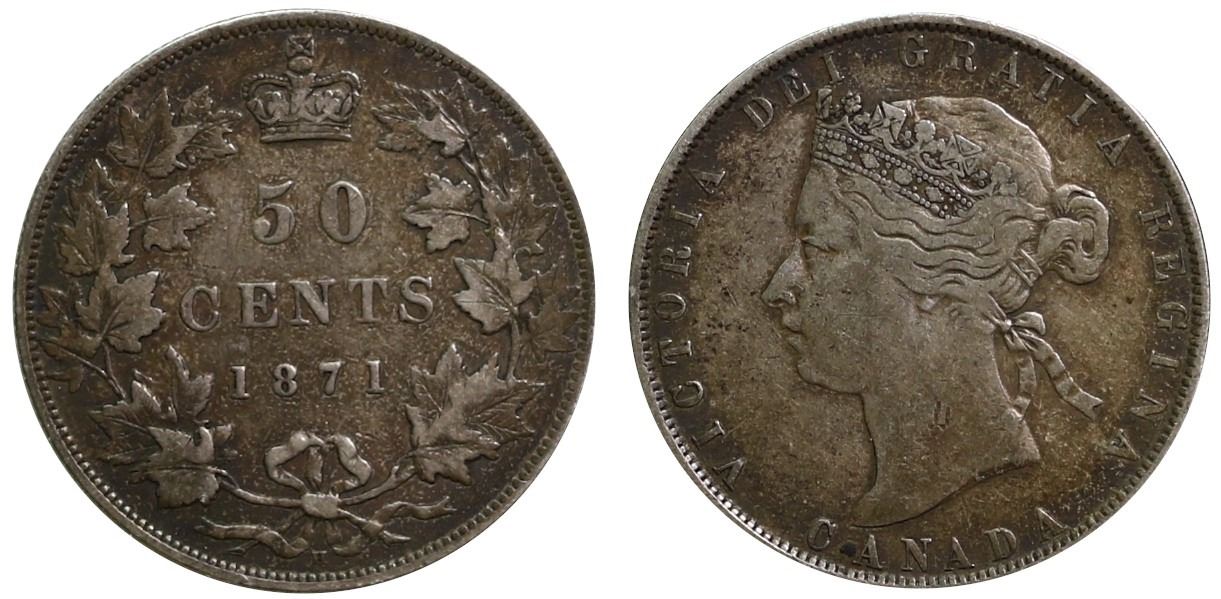 1871H 50¢ F-VF, Lightly toned.