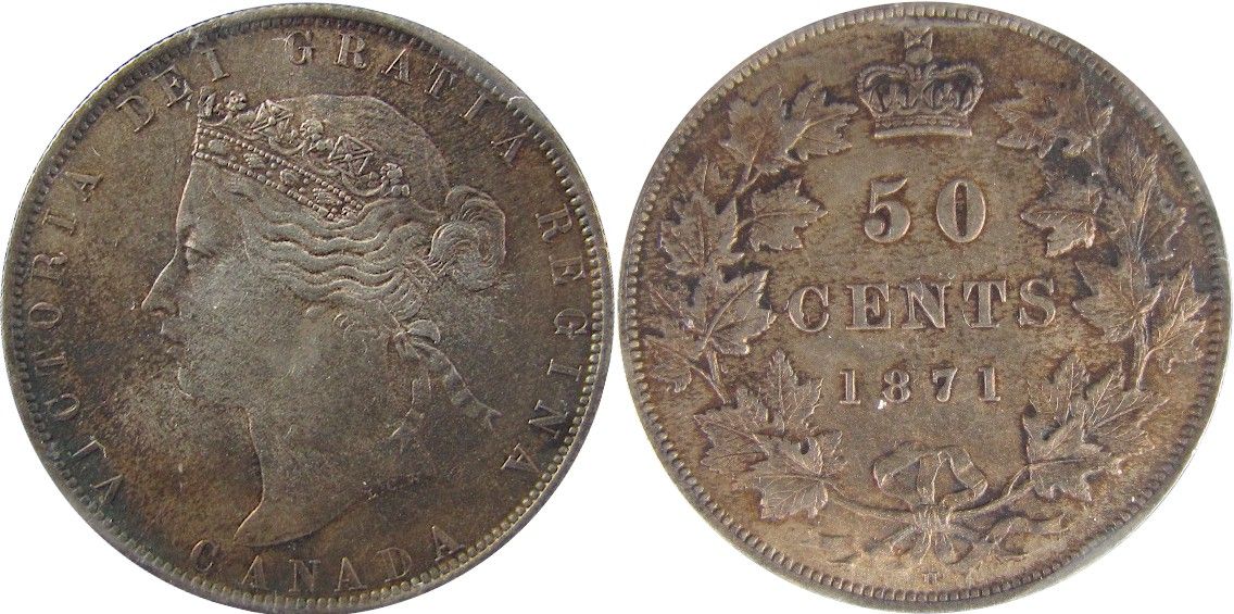 1871H 50¢ ICCS MS62. Victorian key issue with lustre and golden shades. Extremely scarce in Uncirculated condition.