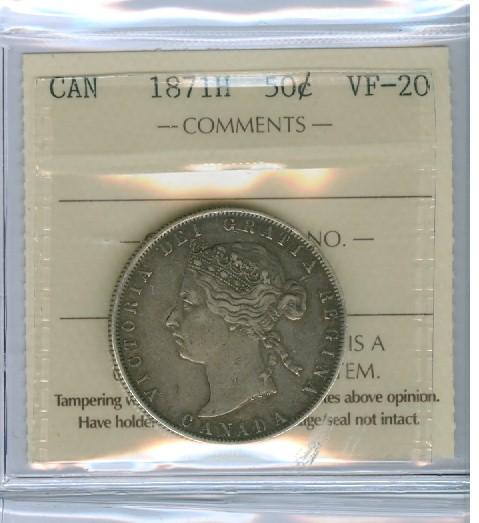 1871H 50¢ ICCS VF20. Strong details with greyish finish.