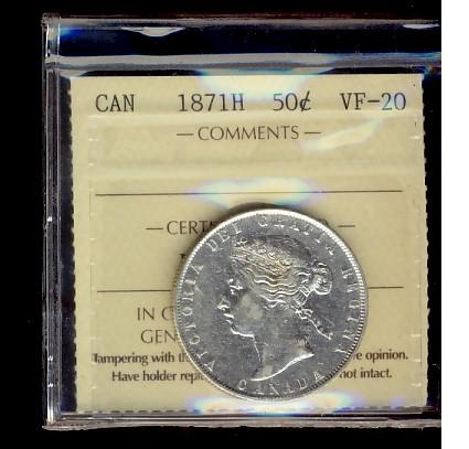1871H 50¢ ICCS VF20.