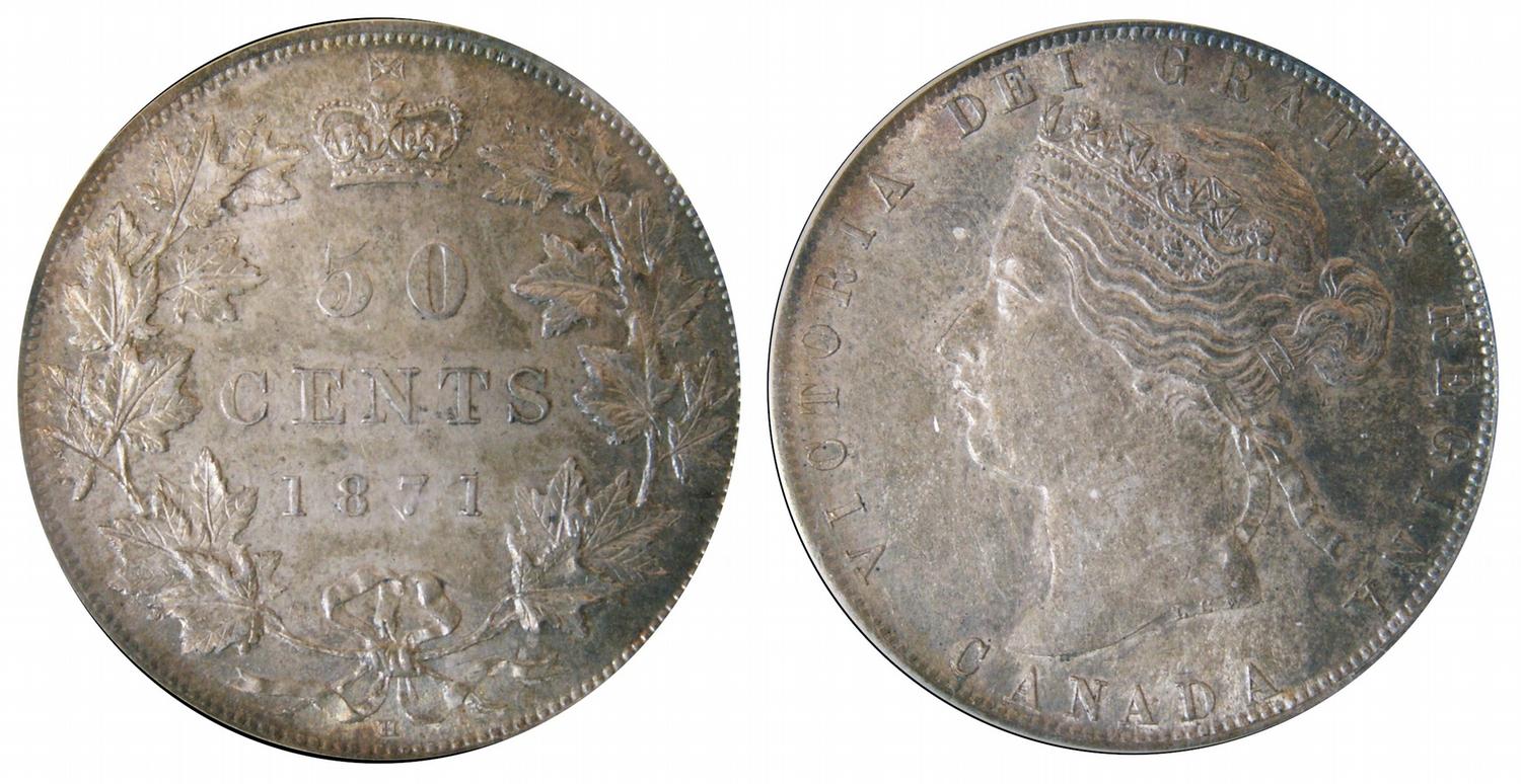 1871H 50¢ PCGS MS63PQ. Light to medium autumn shades over underlying luster. An extremely rare coin in mintstate condition. Don't miss this opportunity to acquire a true rarity! Missing in most advanced collection. Worth a premium bid!