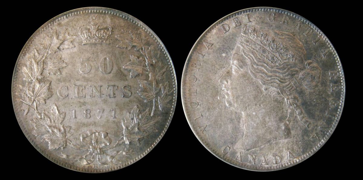 1871H 50¢ PCGS MS63PQ. Light to medium autumn shades over underlying luster. An extremely rare coin in mintstate condition. Don't miss this opportunity to acquire a true rarity! Missing in most advanced collection. Worth a premium bid!