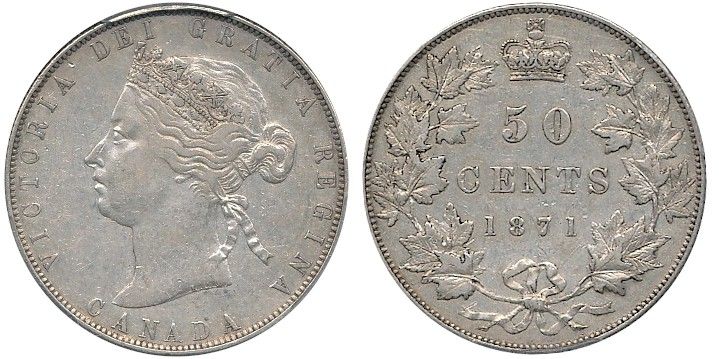 1871H 50¢ PCGS XF45. Light remaing lustre.