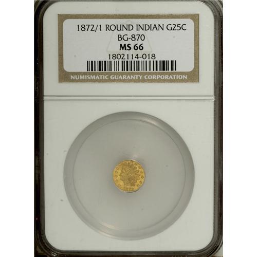 1872/1 25C Indian Round 25 Cents, BG-870, R.3, MS66 NG